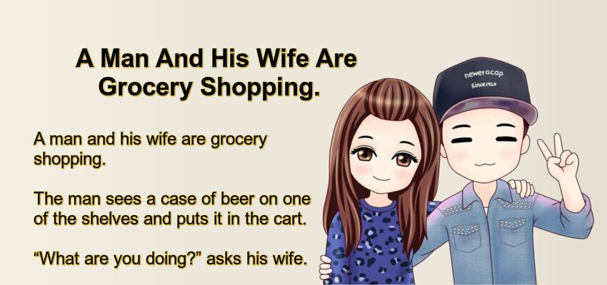 In the next aisle over, the wife sees a bottle of facial cream and puts it in the cart.